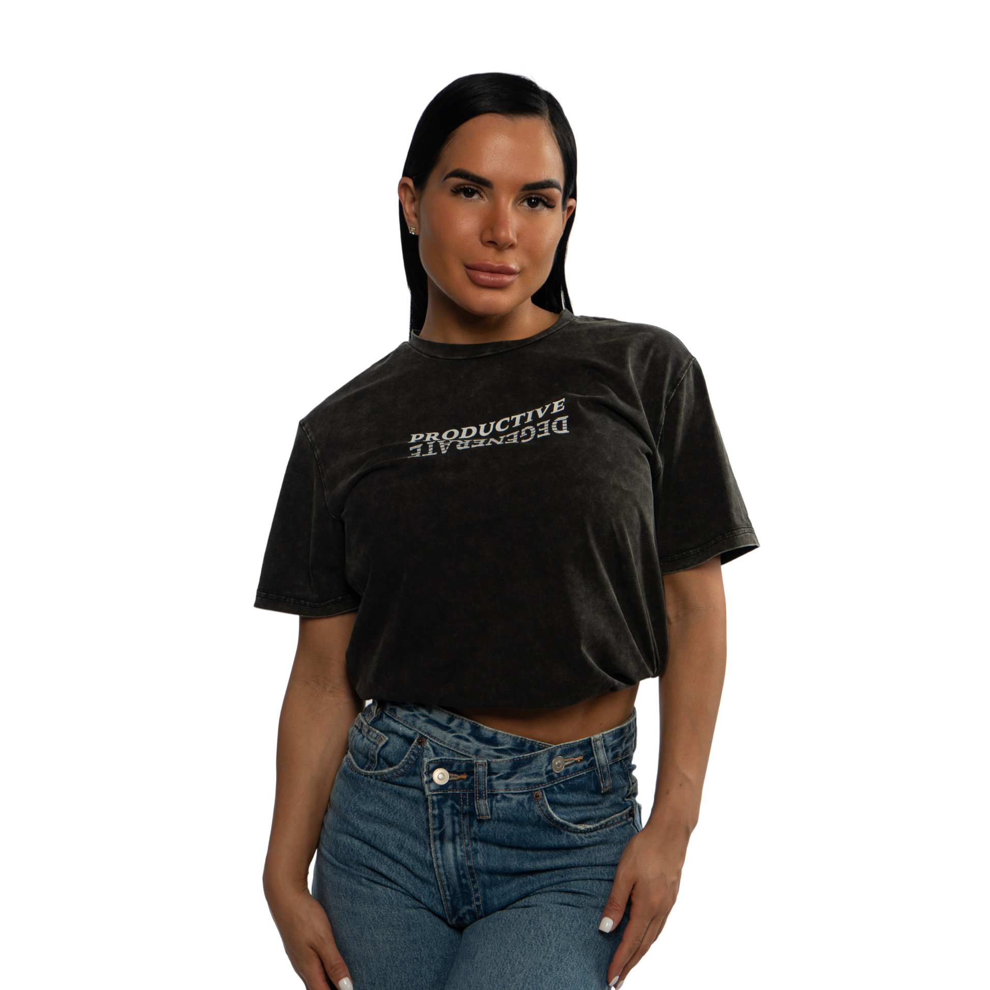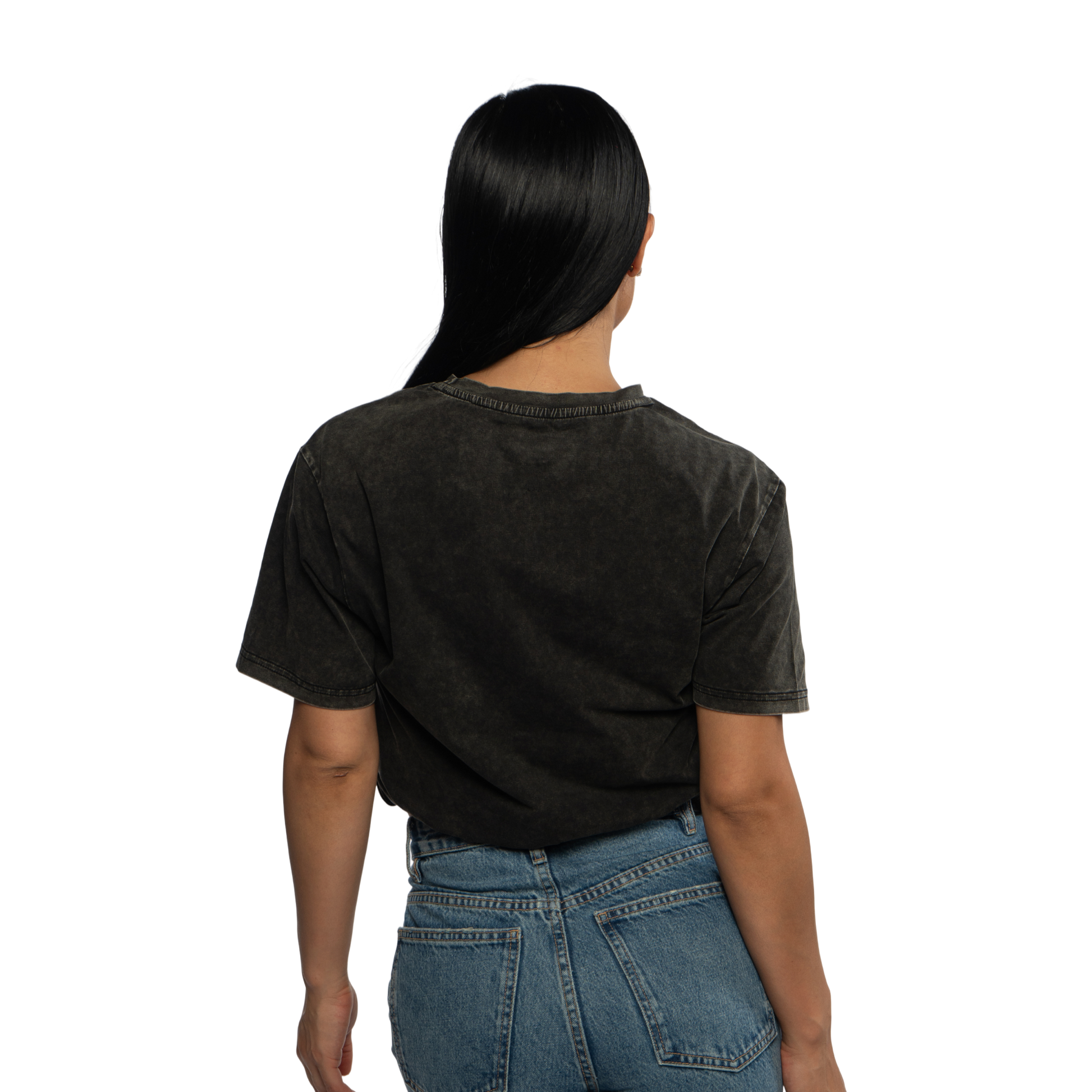 Finished in a black acid wash that gives each piece a uniquely worn-in, high-impact look — like it’s already been through a few stories (and survived them all).